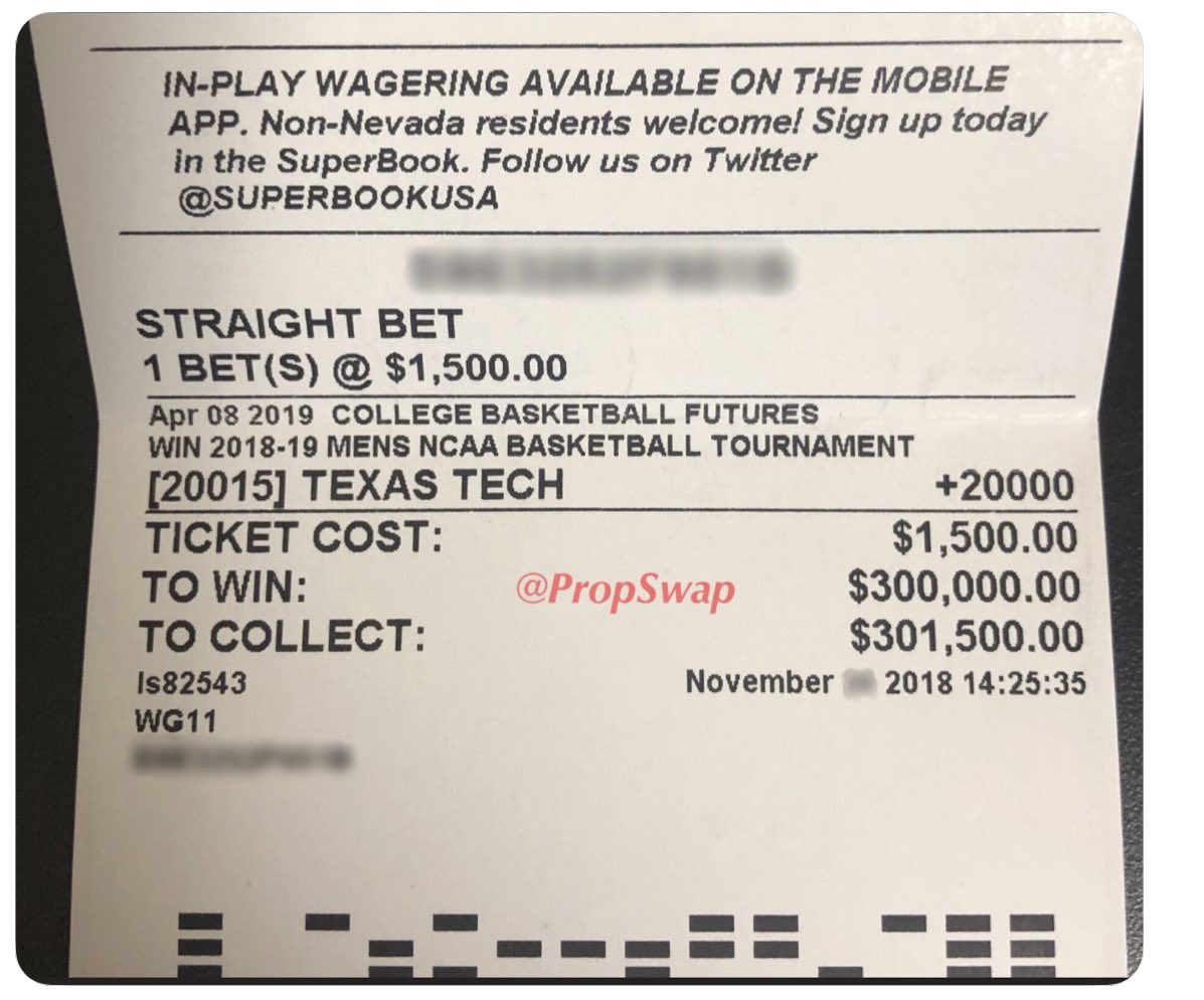Darren Rovell On Twitter I Can T Imagine How Much Money You Would Have To Have To Place A 1 500 Bet On Texas Tech To Win It All In November But This Guy